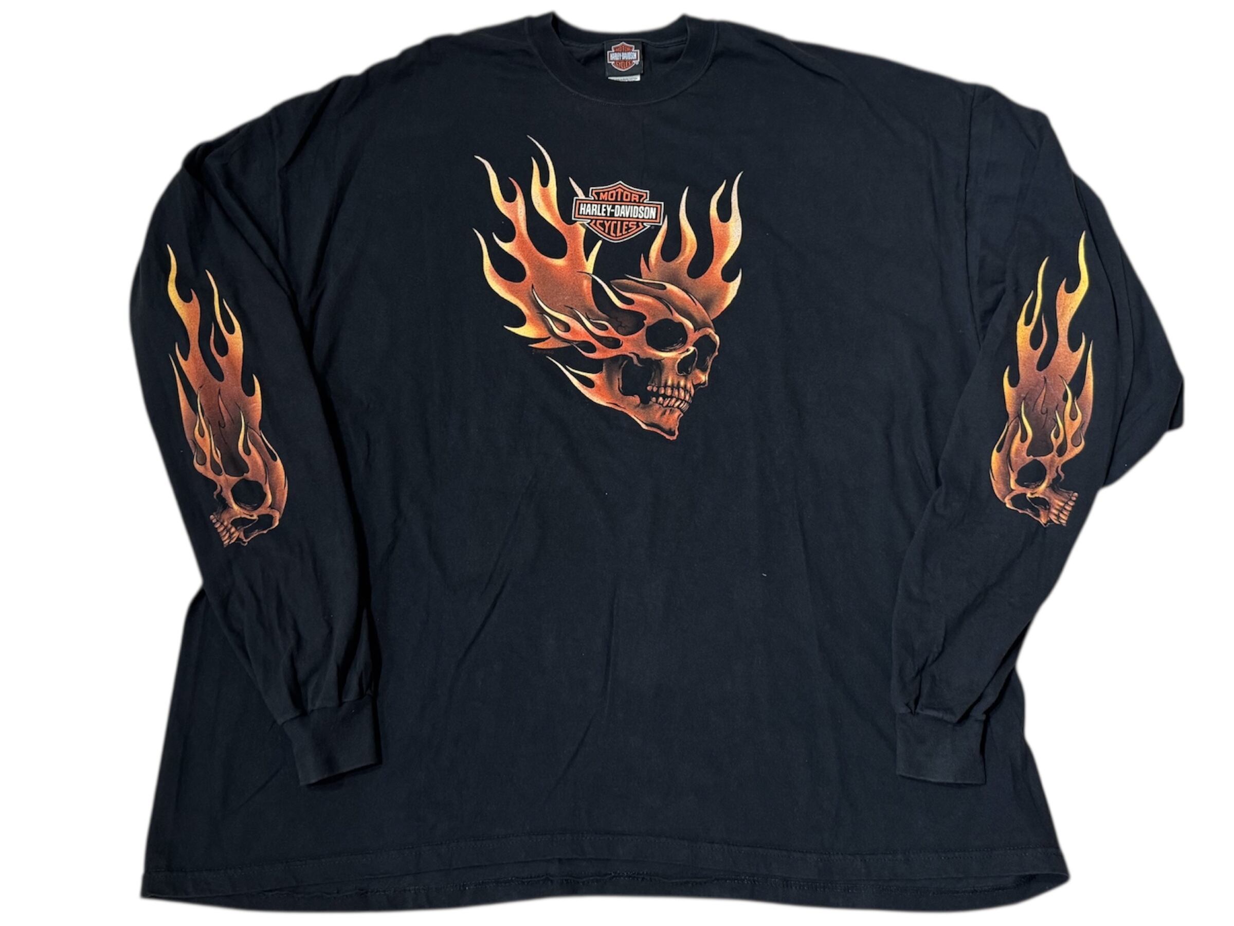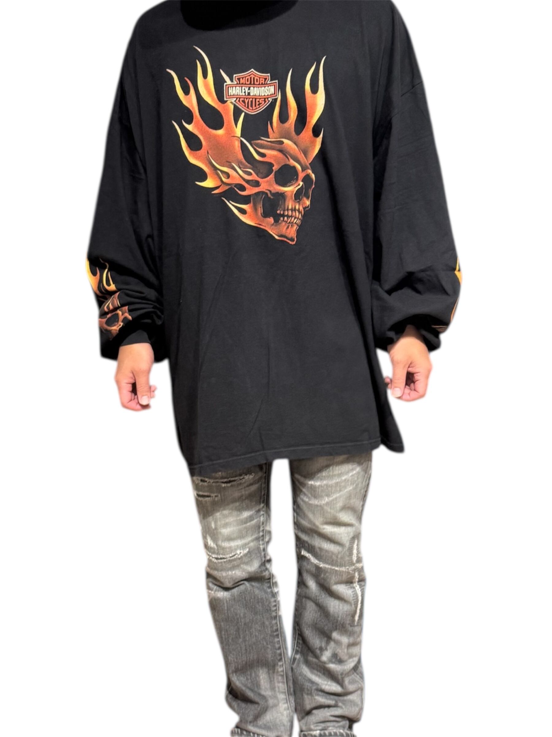 USA製 harley davidson skull flame long sleeve T 5XL